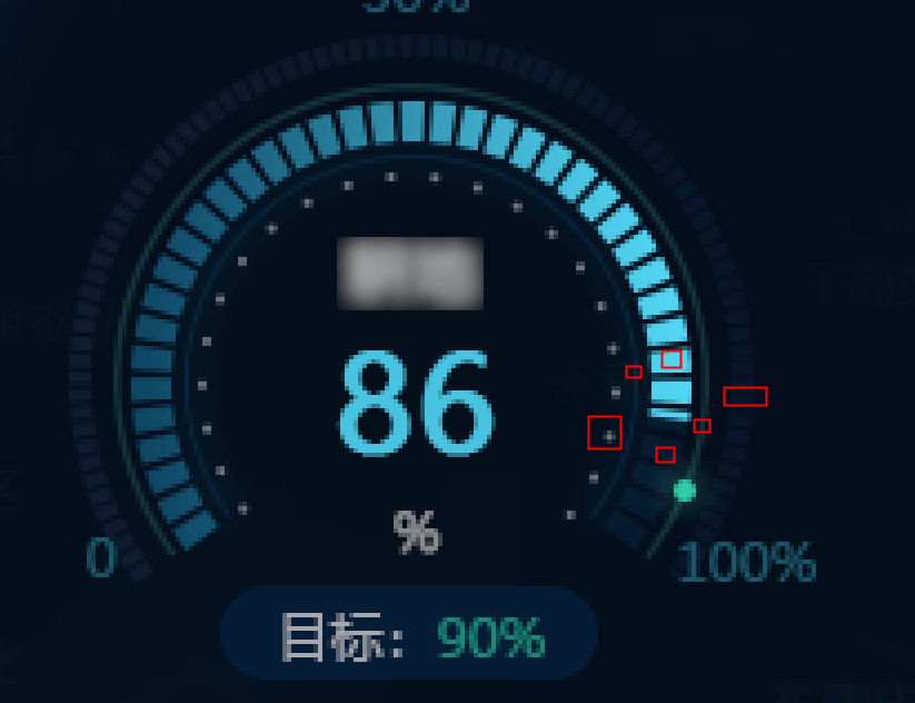 开始分析图表构成,不管如何纷繁复杂,UI人员使用的各种设计工具,和前端使用的绘图手段,很多情况下都是共通的,各种形状+填充构成了美丽的图表世界。如下图,这个图表其实本身确实不复杂,文字可以无视,整个图形主体是由6个圆弧构成,虽然长得都不一样,但是所有非实心的圆弧其实只是dash-array的设置不同而已,不管CSS、Canvas还是SVG,都可以提供很好的支持。